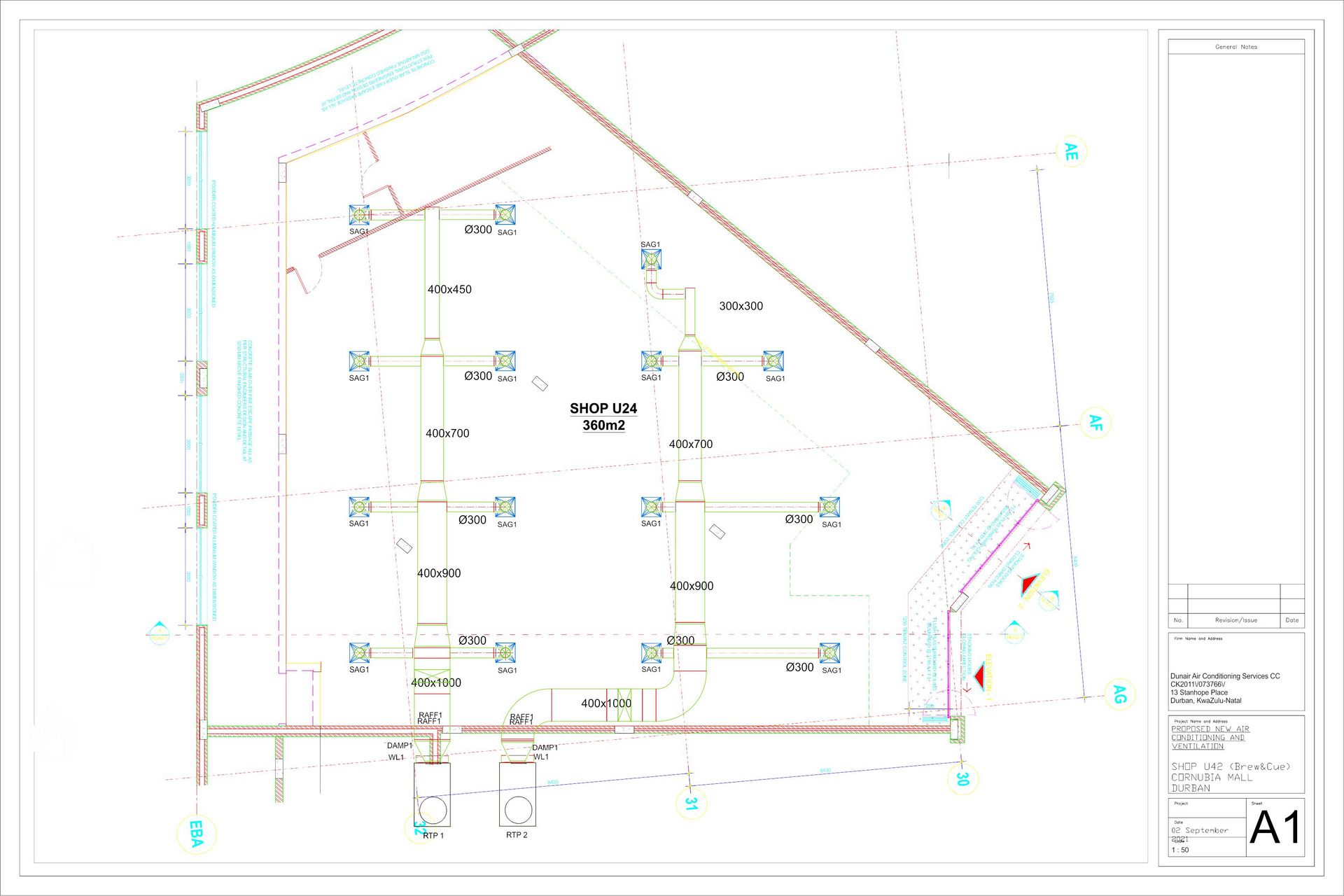 Brew And Cue, a new pool venue in Cornubia mall. Dunair was commissioned to design a new ducted system. Two Alliance Rooftop Package units were selected due to stock availability and backup offered by Alliance. Closing the main road through the Mall was need to rig the units onto the roof top plant area. New duct work was installed, and the system commissioned in time for their opening night