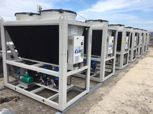 solution was to use 7 Air Cooled chillers, linked to buffer tank which feeds
